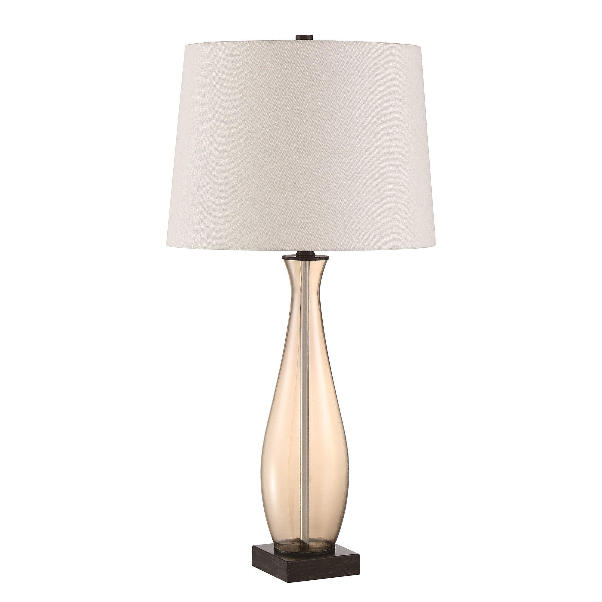 With its subtle curves and graceful glass form, the Montreux Table Lamp brings beauty and style to any room. Reflections from the iridescent champagne glass mingle with stark iron accents in a dark bronze finish to create a classic, elegant look. Includes a tapered, rolled edge shade in beige linen. Features a 3-way switch at the socket and a 6-ft. clear power cord.