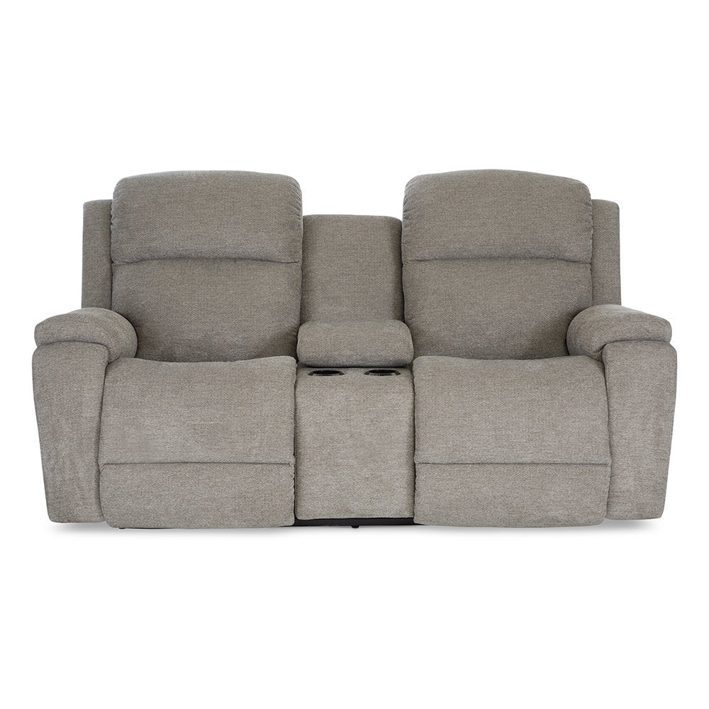 The Dorian Power Reclining Loveseat with Headrest and Console features large-scale proportions and laid-back style. Power adjustable bucket chaise seats, legrests and headrests; armrests on either side—even a place for your drinks—relax all the way!
