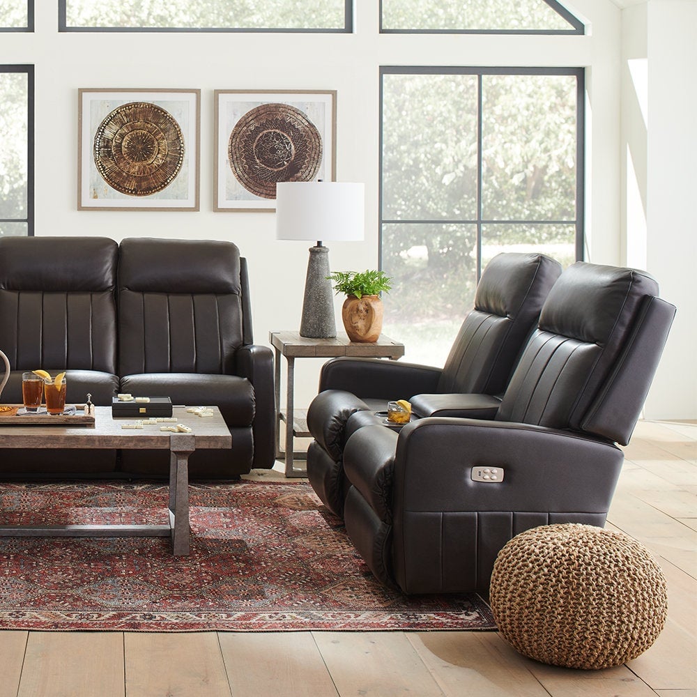 Looking for reclining comfort with contemporary style? The Finley Power Wall Reclining Loveseat with Headrest and Lumbar fits the bill with modern lines, sleek track arms and a tall foam back that gives it a neat and structured look. The ultra-plush chaise seat and legrest cradle the body in a continuous zone of comfort. Simply use the convenient control panels on the outside arms to raise the legrests for reading, relaxing or watching TV.