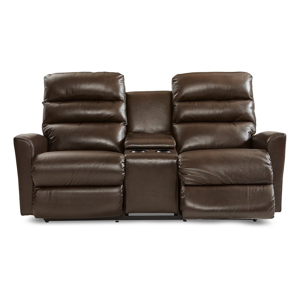The Liam Power Wall Reclining Loveseat with Headrest & Console has sleek tall backs, flared arms, chaise seats and a storage console with cup holders. Easily adjust back, legrest and headrest for custom comfort. And it sits just inches from a wall!