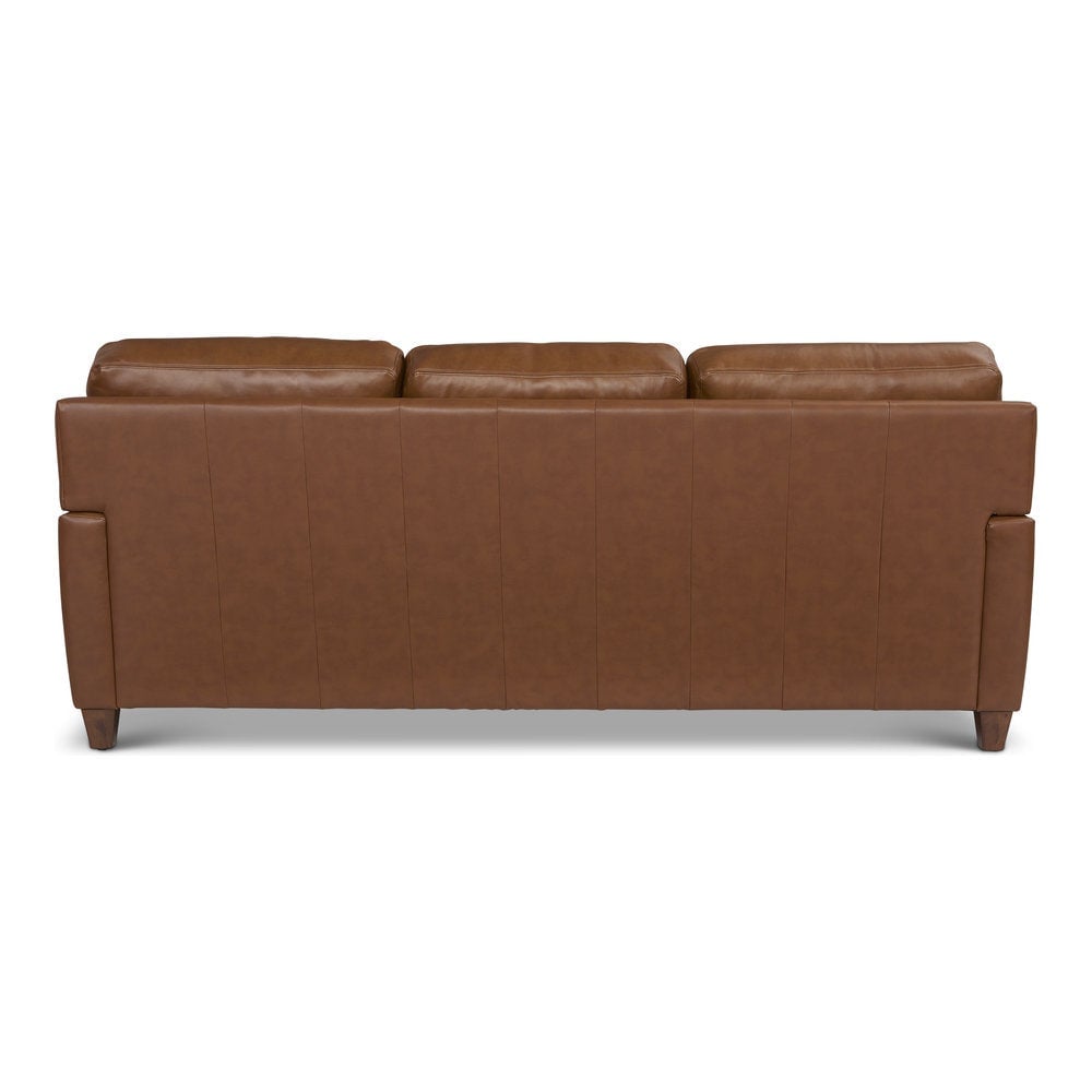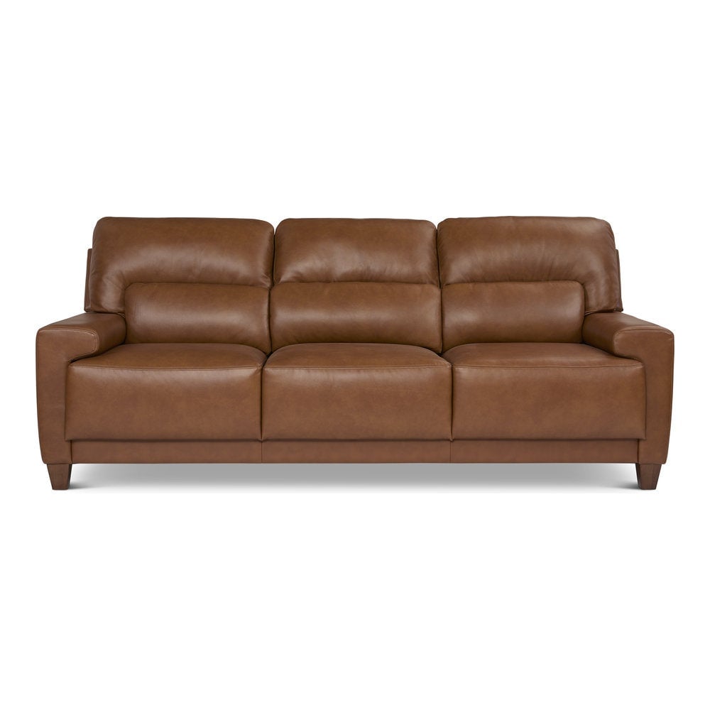 The Draper Sofa’s clean lines and modern angles blend beautifully with the sophisticated look of fine leather. T-shaped cushions and sleek track arms add a contemporary edge to an inviting lounging spot that will become a favorite retreat.