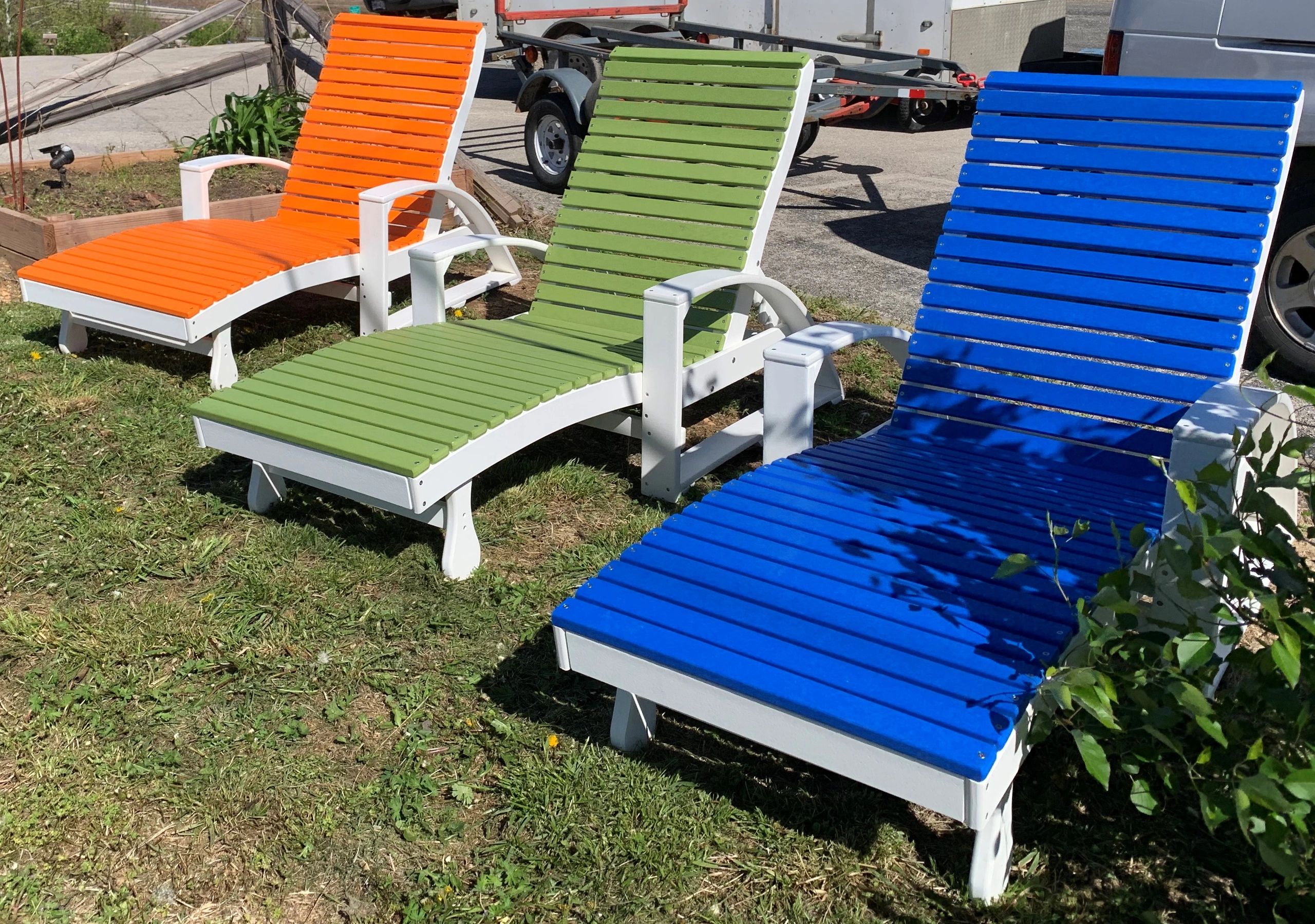 The chaise lounger is made with curves for more comfortable lounging.Poly Furniture (also known as resin furniture), is crafted from an eco-friendly, post-consumer material (recycled milk jugs, and other plastic materials) by RPI (https://plasticycle.com) that is designed to last decades, even when exposed to the elements.